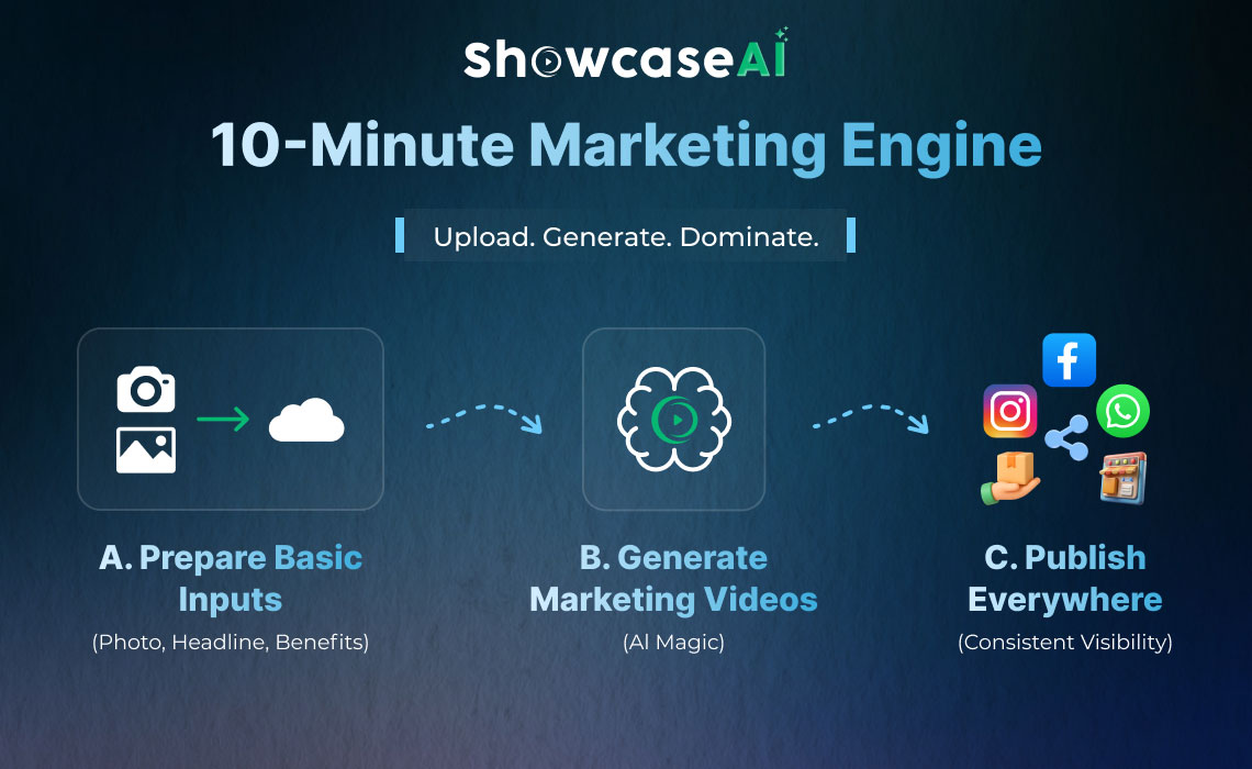 Instead of producing videos manually each time, businesses can now automatically convert product visuals into ready-to-use marketing videos. Platforms like ShowcaseAI allow sellers to upload product photos once and generate multiple cinematic, ad-style, and UGC-style videos in minutes. The goal is not to make one perfect video — it is to make marketing repeatable.